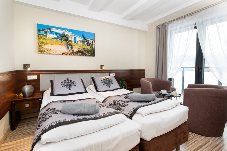 • dwa łóżka pojedyncze (z możliwością zestawienia) – na życzenie dostawka